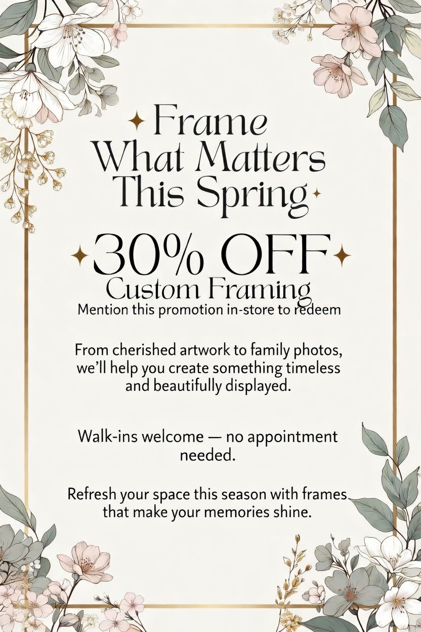 At Art & Frame Depot, our family-owned shop pours heart into every frame, cherishing your treasures— diplomas, vibrant artwork, beloved heirlooms or unique keepsakes, as if they were ours. Our loyal customers love our meticulous craftsmanship, friendly guidance, and warm, personal care that big chains can’t touch.